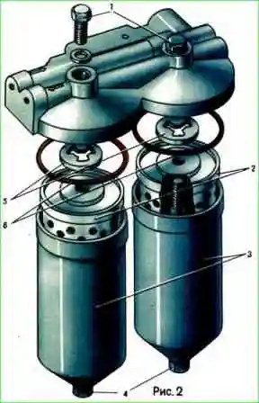 Выверните сливные пробки 4 (рис. 2), слейте топливо из фильтров в посуду, вверните пробки.