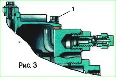Ослабьте болт крепления колпака фильтра 1 (рис. 2) или болт 1 (рис. 3) насоса высокого давления и прокачайте топливо ручным подкачивающим насосом до тех пор, пока из-под болта не пойдет топливо без пузырьков воздуха.