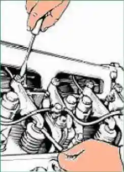 При регулировке тепловых зазоров и повторной их проверке коромысла клапанов рекомендуется прижать: