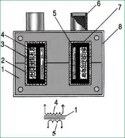 In the ignition coil, they are transformed into high voltage electrical impulses, which are transmitted through wires to the candles.