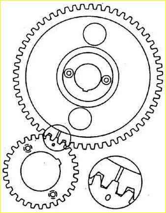 When the gears are engaged, the crankshaft gear tooth with Mark “0” must be against the groove of the camshaft gear teeth.