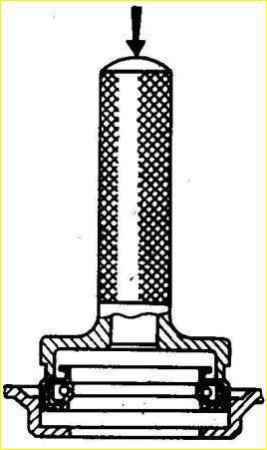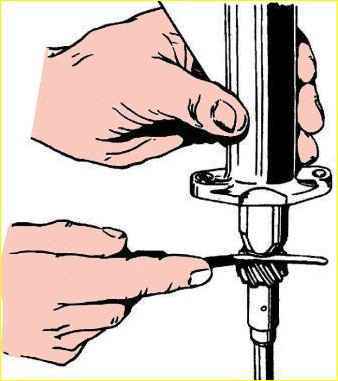 When inserting the drive into the socket, it is necessary to slightly turn the oil pump shaft so that the end of the drive shaft enters the hole in the pump shaft.