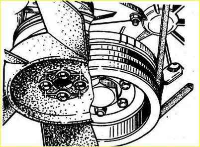 - screw the clutch pressure plate assembly with the casing to the flywheel, having previously centered the driven disk using a mandrel (you can use the input shaft of the gearbox) along the hole in the bearing in the rear end of the crankshaft.