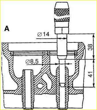 Pressing in new bushings for the intake and exhaust valves is carried out until they protrude 20 mm above the head. After pressing, expand the holes of the bushings to a diameter of 9+0.022 mm, and grind the seat chamfers, centering them along the hole in the bushing.