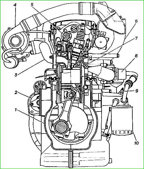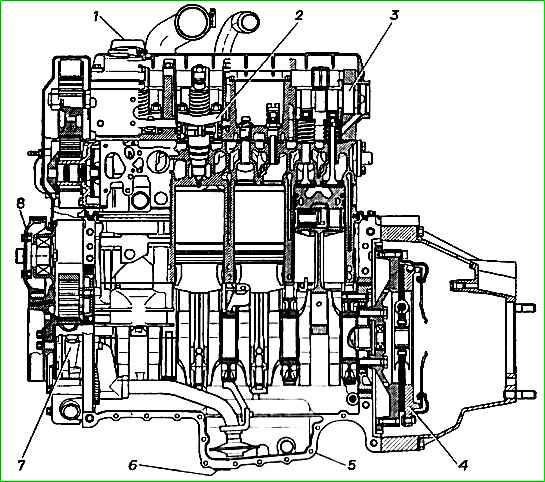 Monoblock - cast, cast iron. And the monoblock houses the blind engine cylinders, gas and air channels, cooling jacket, lubrication system channels and channels supplying fuel to the pump injectors.