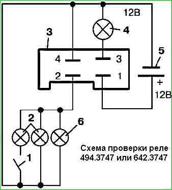 If, when the switch is on, 4 lamps do not light up or are on constantly (not blinking), then inspect the relay contacts