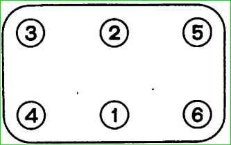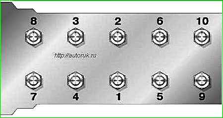 The nuts of the cylinder head mounting studs are tightened from the middle of the head to the ends (front and rear).