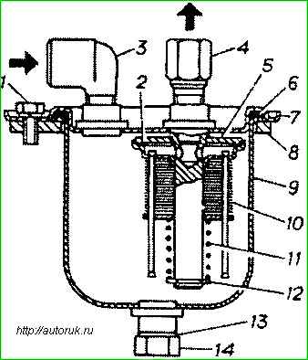 Maintenance of the fine fuel filter consists of periodically cleaning the sedimentation tank from dirt and sediment every 20,000 km, washing the mesh filter element or replacing the paper filter element (for engines manufactured before 2001), replacing the filter assembly (for engines released since 2001).