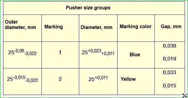- - insert the pushers into the sockets according to the marks on them. Pre-lubricate the pushers and holes in the block with engine oil;