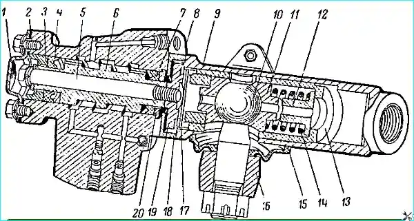 3. Unscrew the bolts securing the control valve body to the longitudinal rod and remove the control valve.