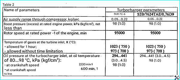 Technical characteristics of the turbochargers are given in Table 2.