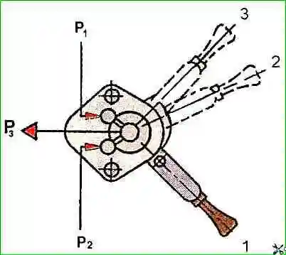 Then, using a center punch, carefully knock out the pin 4 and remove the cam of the rod 7 with the washer.