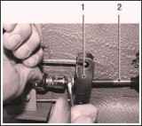 From the bottom of the car, using a 13 mm spanner, loosen the tightening of the nut of the coupling bolt of the clamp securing the control rod to the shank of the gear selector rod hinge (Fig. 1)