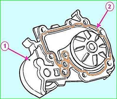 - - bolts 2-8 (M6) for fastening the water pump 10 Nm (1.0 kgf.m).