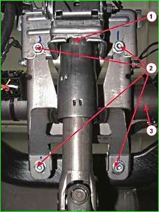 Unscrew the four bolts securing the steering column to the instrument panel frame and remove the steering column