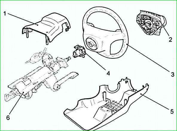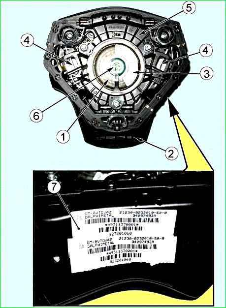 The steering wheel (Fig. 4) structurally contains retainers 1 for fastening the driver's airbag module.