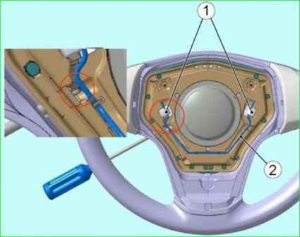 Press the screwdriver to release the module from the locks 1 (Fig. 2) of the steering wheel.