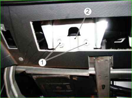 Unscrew bolts 1 (Fig. 15) securing the module to bracket 2 of the instrument panel cross member.