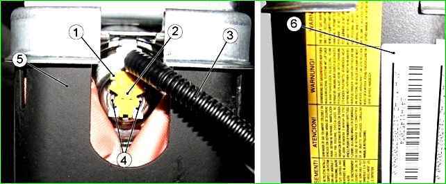 Attention. When installing a new gas generator module, tear off label 7 (Fig. 4) with a barcode from the gas generator module and paste it into the "Special Notes" section of the service book, indicating the installation date and vehicle mileage, and the reason for replacement.