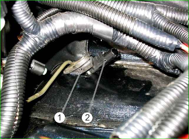 We take the tube out of two plastic clamps 1 and remove it from the car