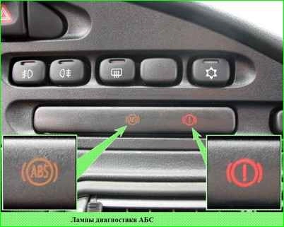 If the ABS diagnostic lamps in the control lamp unit do not light and the diagnostic device does not switch to the "Phase No. 1" mode, it is necessary to clear the ABS controller memory from accumulated errors using the diagnostic device.