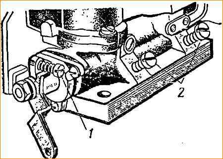 Having adjusted the composition of the mixture, try to reduce the idle speed by unscrewing the thrust screw 1 of the throttles, and then again lean the mixture with both screws alternately, as indicated above.
