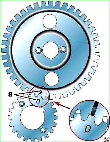 The correctness of the distribution phases is ensured by installing the gears according to the marks (Fig. 2).