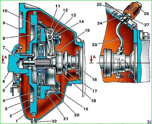 The clutch (Fig. 1) of the car is dry, single-disc, with hydraulic release.