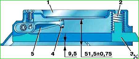 Adjustment is carried out by screwing in or unscrewing the adjusting screws (Fig. 2) until the size is (51.5±0.75) mm (the distance of the head of one of the screws from the surface of the plate).