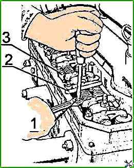 To adjust the clearance, loosen the lock nut of the screw on the rocker arm of the adjustable valve in accordance with Figure 2 and, turning the screw, set the required clearance using the feeler gauge between the rocker arm striker and the end of the valve stem.