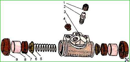 To remove the rear brake working cylinder from the car, it is necessary to disassemble the brake mechanism, as described in the article - ZIL-5301 rear wheel brakes