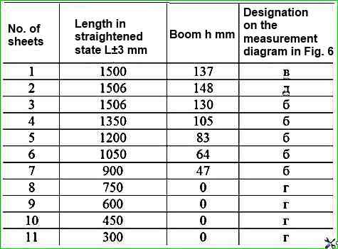 Parameters of the front spring sheets, (see Fig. 6)