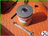 To replace the filter, we will need wrenches "13", "19", "17", a brush, a 1L container for draining fuel from the housing.