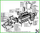 The figure shows the installation locations of the parts and their designations according to the spare parts catalog.