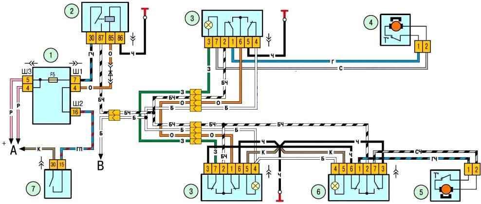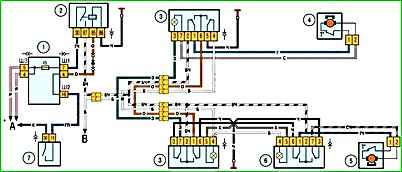 La alimentación de los interruptores se suministra a través del fusible F5 sólo cuando el encendido está puesto, cuando los contactos del relé 2 están cerrados.