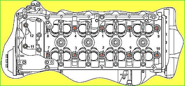Desatornille los pernos y retire las tapas de los árboles de levas, limpie la base debajo de los árboles de levas en la culata y en las tapas con una servilleta y, antes de instalar las tapas, lubrique las roscas de los pernos con aceite de motor limpio.
