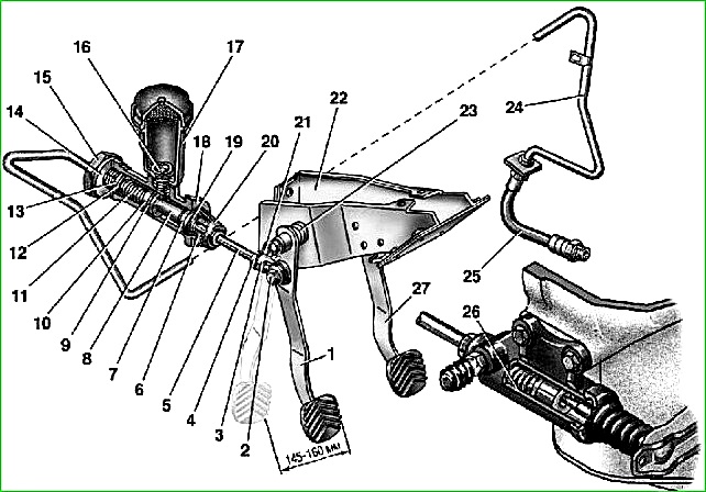 - - desconectar el empujador del cilindro maestro del pedal, quitar dos casquillos de plástico del ojo del empujador;