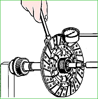 El montaje de la carcasa con el plato de presión del embrague se realiza en orden inverso al desmontaje.