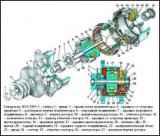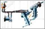 En un mecanismo de dirección con servomotor hidráulico incorporado, en lugar de un rodillo, se corta un sector de tres dientes en el eje del bípode, y el papel de un gusano lo desempeña un tornillo conectado a una cremallera montada en el pistón. sobre dos cojinetes axiales cuya precarga se ajusta mediante una tuerca