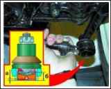 Desconectar el empujador del pedal del embrague en el habitáculo desatornillando la tuerca 1 y quitando el eje del empujador 2 con dos casquillos de plástico