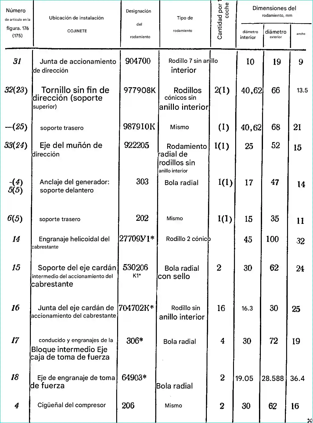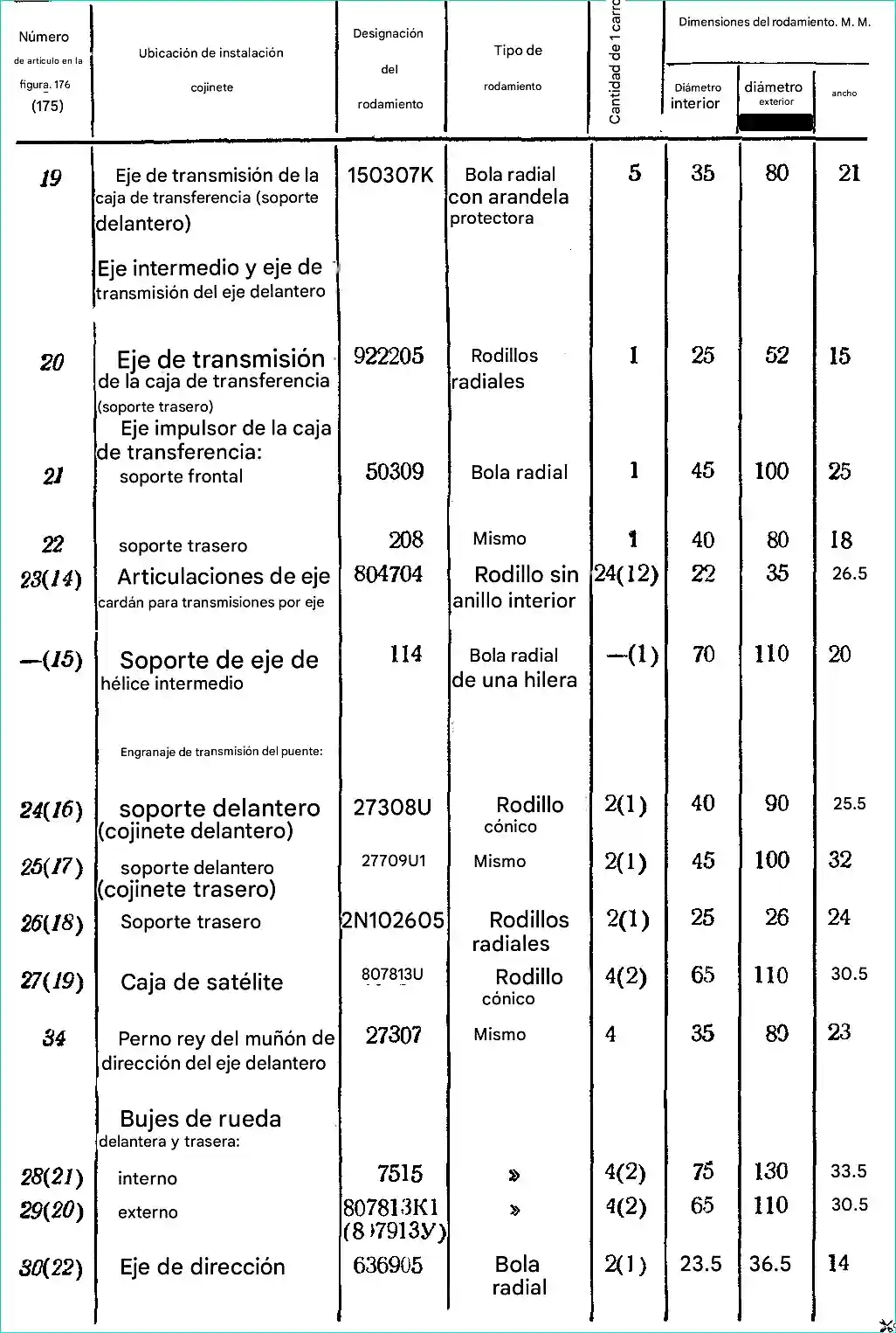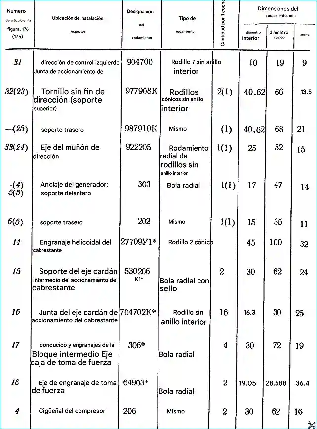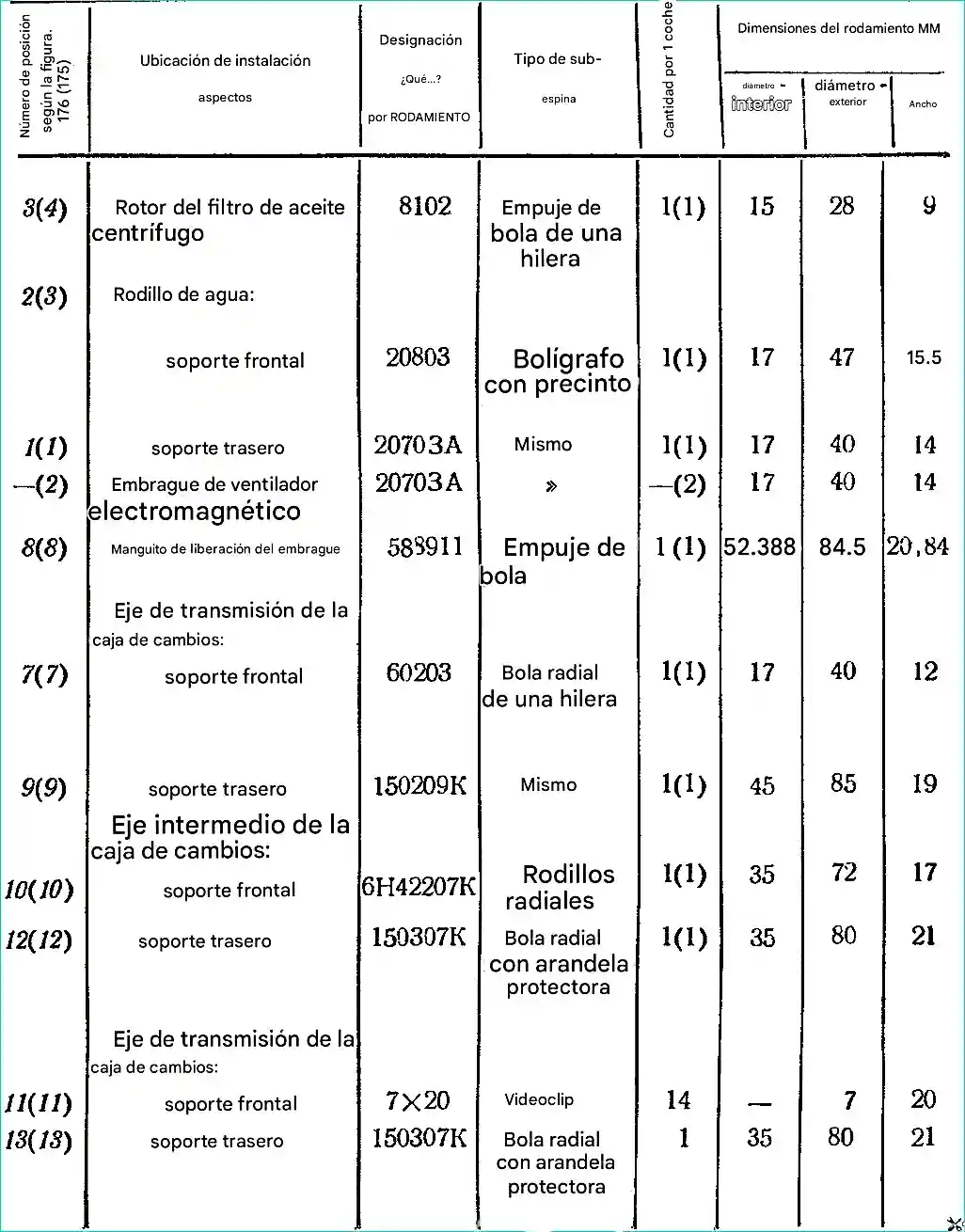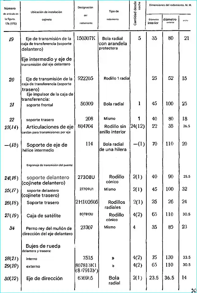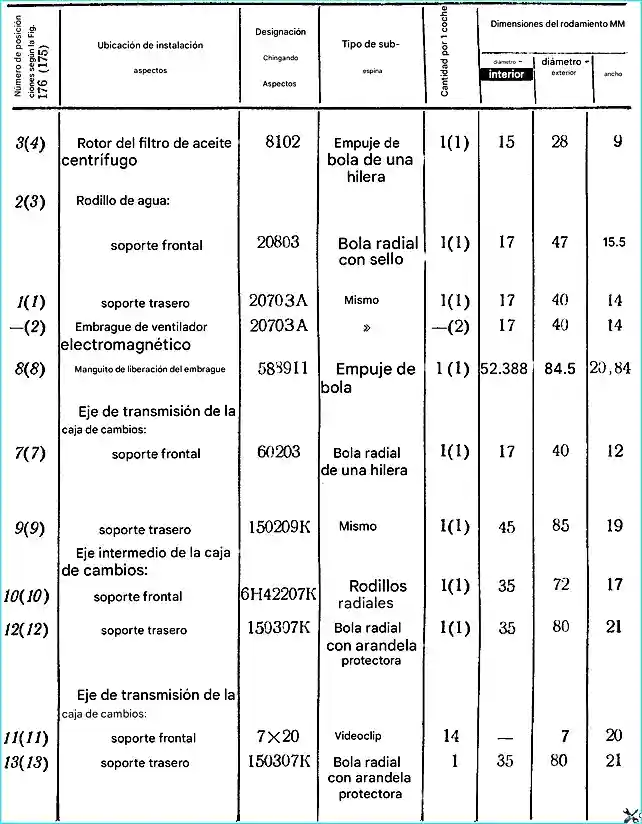Entre paréntesis están los rodamientos utilizados en el automóvil GAZ-53