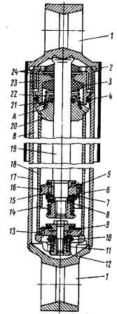 El sello de aceite 3 se coloca en una carcasa (soporte) 23 y se presiona a través de una arandela mediante un resorte cónico 22. Se instalan sellos de fieltro para proteger el sello de aceite 3 de la suciedad y el polvo.