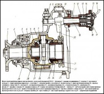 El diferencial central está montado en la carcasa 3, que está montada en la carcasa del engranaje principal del eje intermedio.