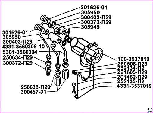 Detalles de instalación de la válvula del freno de estacionamiento del automóvil ZIL-5301 según catálogo