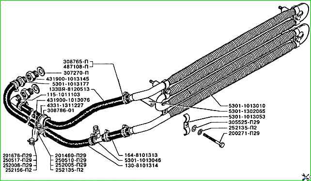 Instalación de un enfriador de aceite para el motor ZIL-5301