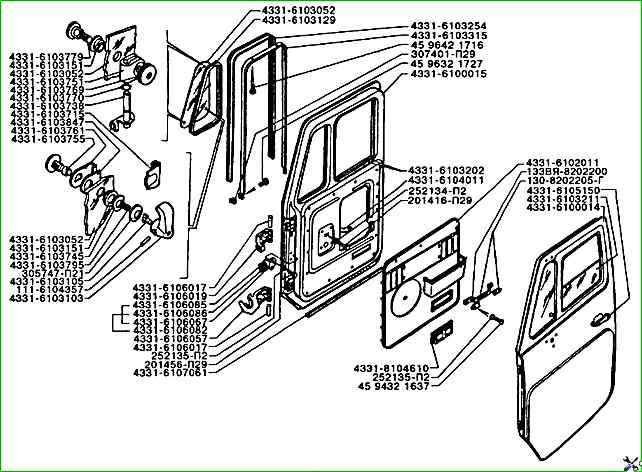 Piezas de puerta ZIL-5301 según catálogo