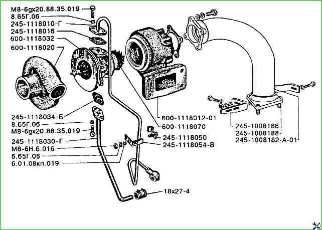 Partes del tracto de suministro de aire y líneas de aceite del turbocompresor ZIL-5301