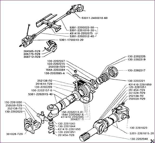 Piezas de la transmisión cardán ZIL-5301 según catálogo