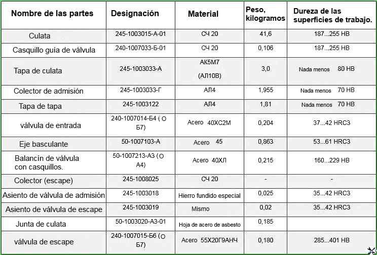 La culata es de hierro fundido, en cuyas cavidades internas hay canales de entrada y salida cerrados por válvulas