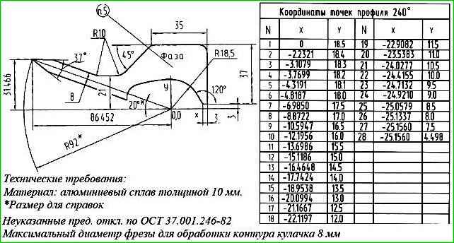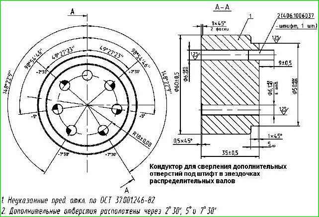Выбор отверстия на звездочке, с необходимой величиной смещения, производится в зависимости от величины отклонения углового положения кулачка от номинального значения.